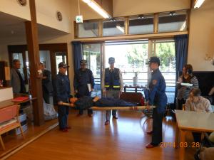 今回の避難訓練は、総社市消防署西出張所の方々にお越しいただき、避難や消防などについてアドバイスをいただきました。