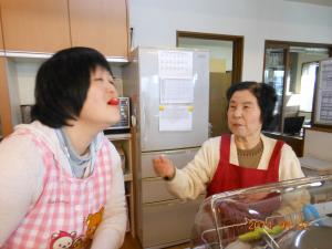 苺をいただいたので、ご利用者と一緒におやつを作っています。