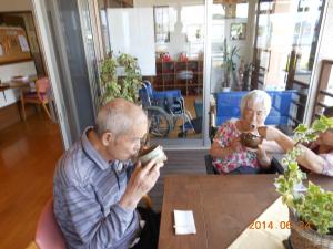 職員がたてた抹茶を、美味しい和菓子と一緒に