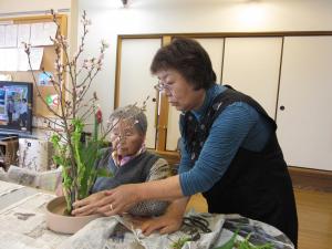楽しそうに、今月の生花教室が開催されています。