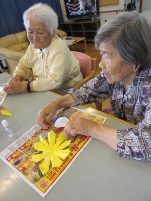 黄色のお花紙で、花びらを作り、貼り付けてくださってます。