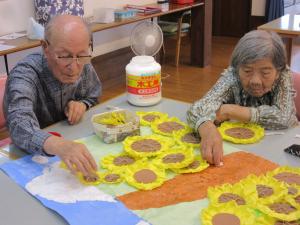 完成に向けて今日も熱心に作った花を貼る作業を行っています。