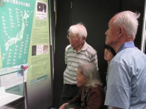 隕石の展示を鑑賞しました。皆さん真剣に観ています。