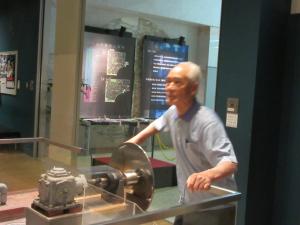 科学展示室での様子ですが、何やら真剣に上を見つめ手で回しています。