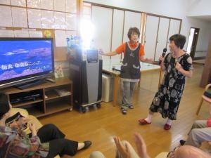 今月は、納涼カラオケ大会を行いました。 地域の方や、ご家族の方が来てくだ