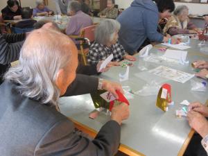 鶴はどこに貼ろうか?俵はここかなぁ?など皆さん熱心にされています。