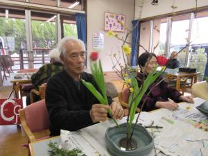 生ける姿は皆さん真剣です。素敵に生けることが出来ました。