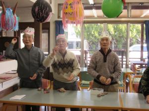 赤鬼・青鬼・緑鬼・黄鬼・お多福(?)にめがけ