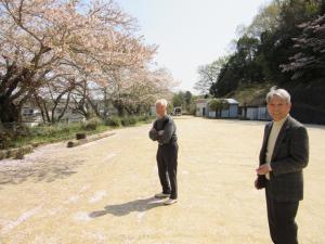 時に風が吹き桜が散ったり、地面に落ちた花びらが、風に沿って流れるように移動したり