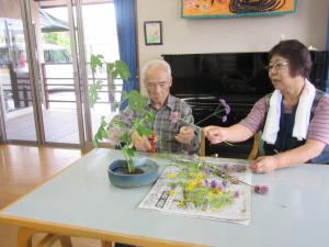 教えてもらいながら綺麗に生けて玄関に飾りました。