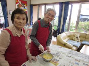 甘い甘いおやつ作りをしました!皆さん材料をよーく混ぜてもらったのでおいしいケーキが出来ました!