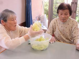 今日は皆さんとお昼のおかず(一品)作り!!皆さん、手慣れた様子で下ごしらえをされています。