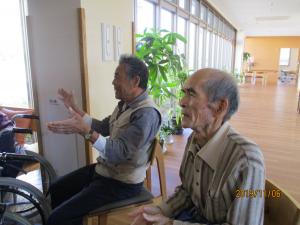 今日は音楽療法に参加しました。知っている歌に合わせて手をたたいて楽しそうに歌われています!