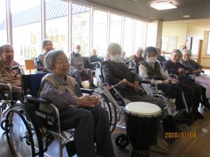 今日は音楽療法の日!知った歌の時は大きな声で歌い、楽器を借りると軽快に演奏されていました!