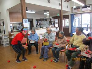 今日は節分祭(第1回)!鬼に豆の代わりにお手玉を投げて一年の無病息災を願いました!