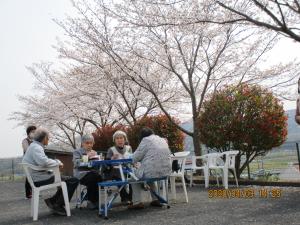 テーブルよ椅子を出し、桜を見ながらおやつを食べ、ゆっくり過ごしまし た。
