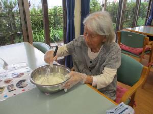 こちらではべビーカステラの生地作り!だまにならないように混ぜて下さっています