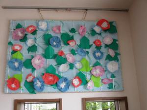 ハイビスカスに続いて完成した朝顔の壁飾りを設置しました!