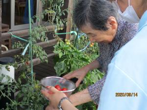 プランターのトマトが鈴なりになっていたので収穫をして頂きました!