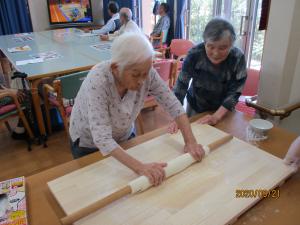 先に仕込んでおいたうどん生地を伸ばしていきます。