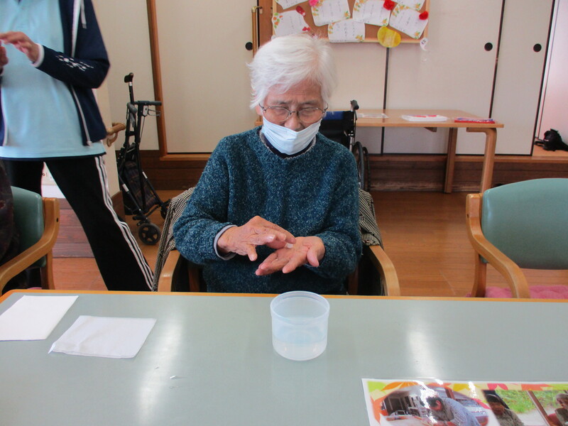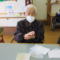まずは、材料作り。お花紙を丸めてもらいます。数が要るので少しづつ・・・