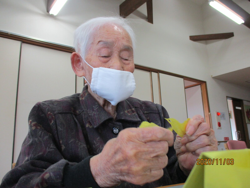 今度は画用紙でもみじやいちょうの葉を作ってもらっています。