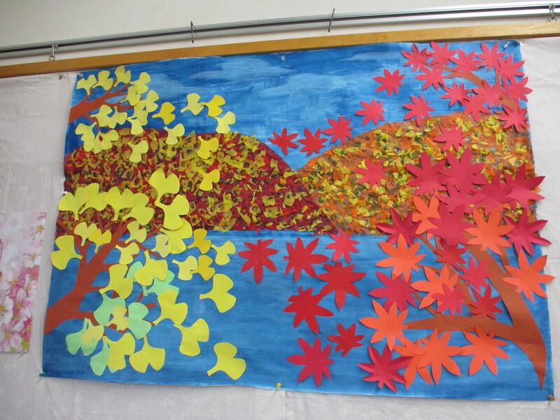 12月の壁飾りの紅葉が完成しました!