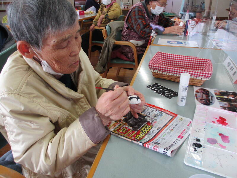 紙粘土で顔を作り乾いたら絵具でお化粧をしていきます!