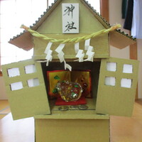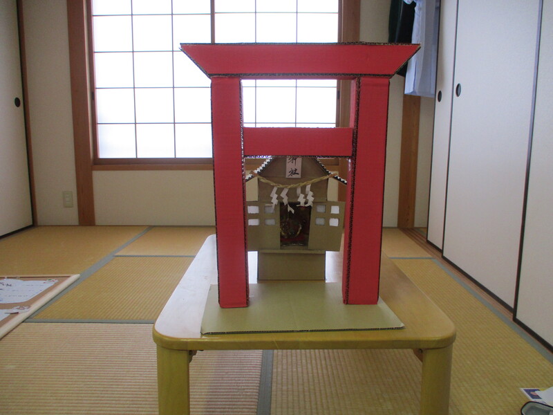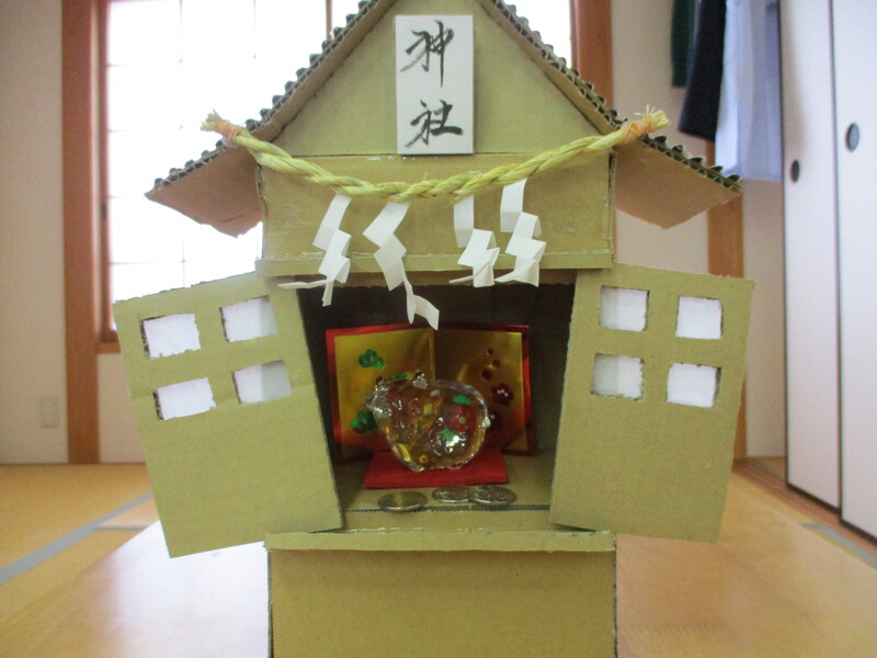 小さくはありますが皆様で作った鳥居と社の中の今年の干支の牛が立派です!