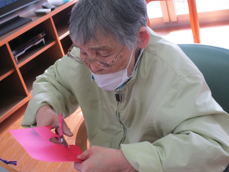 水仙に引き続き、2月の壁飾り作りが始まりました。
