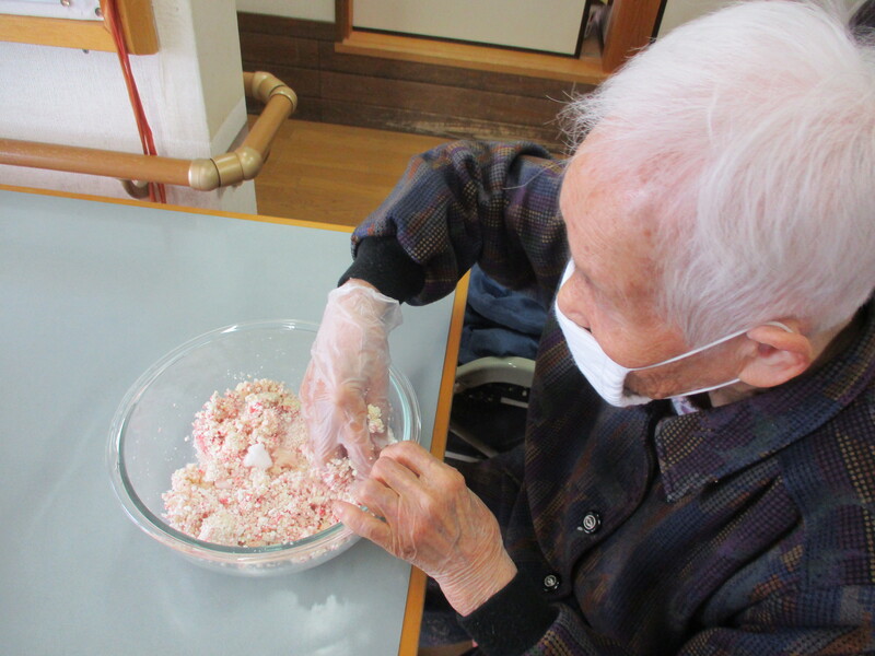 今日はひな祭りでおやつ作りをしました!作ったのは三食団子です。