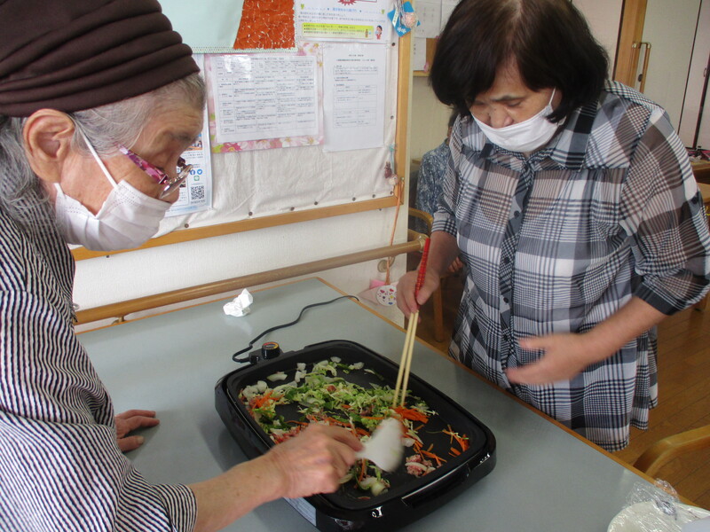 ホットプレートで焼きそばを数回に分けて焼きました。
