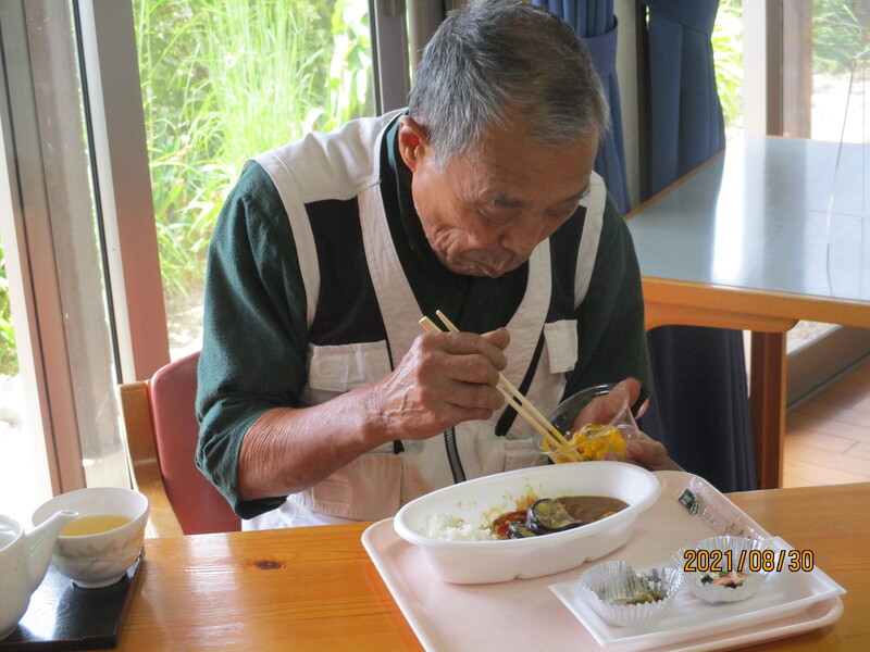旬の食材たっぷりのカレーに副菜、おやつに甘い牛乳寒天とボリュームまんてんで、皆さん美味しそうに食べられています!