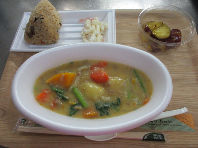 10月の食事作りは、シチューと炊き込みご飯です。おやつは大学芋になっています。