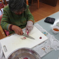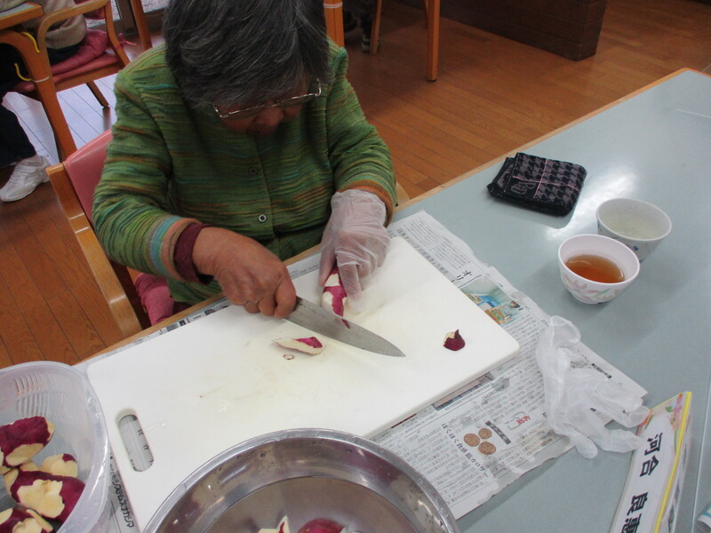 大学芋は揚げると固くなるため、蒸して表面のみ少し焼いたことにより、喜んで食べていただきました。