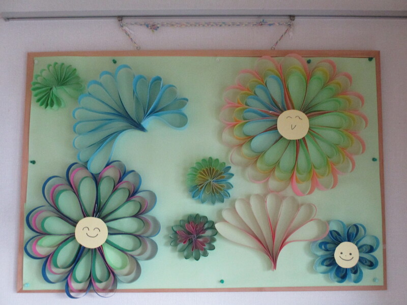 大きなお花は三色の画用紙が輪になっておりとてもカラフルです。