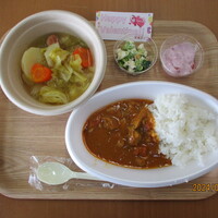 バターチキンカレー ポトフ ブロッコリーとゆでで卵のサラダ 🍓いちごのフルーチェ