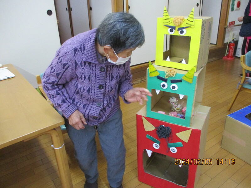 節分には手作りの鬼👹が登場しゲームをして大いに盛り上がりました。