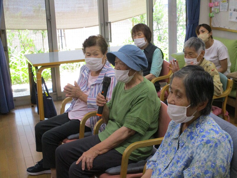 七夕の日には『ボランティアグループつくしんぼ』の方が来て下さり、ミニコンサートを開催!手拍子をしたてリズムをとったり、一緒に歌ったりと皆さん楽しまれていました✨