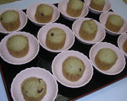 ④カップの8分目まで生地を入れ、蒸し器で15分程度蒸す。