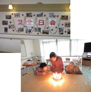 ケアハウスの入居者の皆さんと職員とで、誕生日の歌でお祝いし、