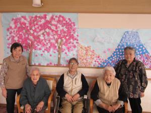 ケアハウスの桜の壁飾りも満開に完成しました☆