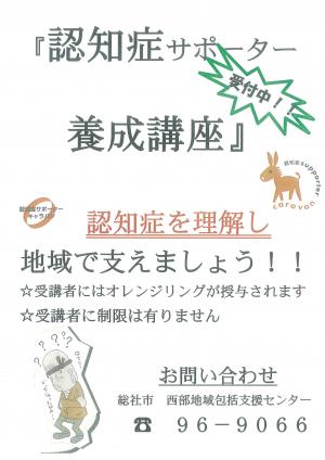 総社市西部地域を対象に『認知症サポーター養成講座』を随時開催しています。