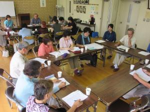 西部地域では「集いの場として公会堂を活用できないか」検討を重ねており、神在地区でも関係者の協力を得て、公会堂の訪問調査を実施することとなりました。また、活用できるケアシステム図の作成に向け、地域の社会資源情報の確認を改めて行いました。超高齢化社会の訪れを感じながらも、地域差と個人の考えは大きく開いています。神在地区でもケア会議の度に、現状を確認しつつ取り組む方向性を会長・副会長のリードのもと、今日も有意義な話し合いが行われました。