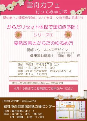 さて、チラシのとおり4月雪舟カフェを開催します。すでに参加申し込みの連絡をいただいておりますので、ご希望の方はお早めに連絡くださいますようお願いします。