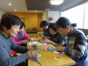 喫茶コーナーの後に、こいのぼりをデザインした壁掛けを折り紙でつくりました。