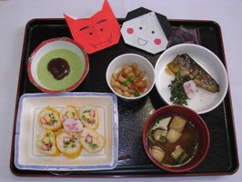 厨房職員で折った「鬼と福」、かわいいでしょ!