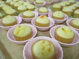 今日は手作りおやつ「オレンジ風味ヨーグルト蒸しパン」を提供しました。