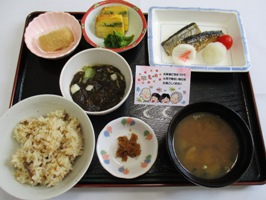 今日は秋分の日ということで、秋を感じていただけるよう「きのこごはん・さんまの塩焼き」で敬老膳を提供しました。
