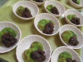 今日のおやつは厨房に来ている実習生さんが考えた「抹茶いももち」を提供しました。